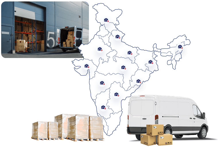 Share space across 14+ fulfillment centers in 8+ locations — spanning over 3 Lakh+ Sq. Ft.